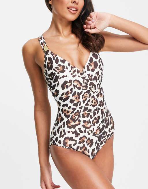 Figleaves – Illusion – Leopardmönstrad draperad baddräkt med figurformande design