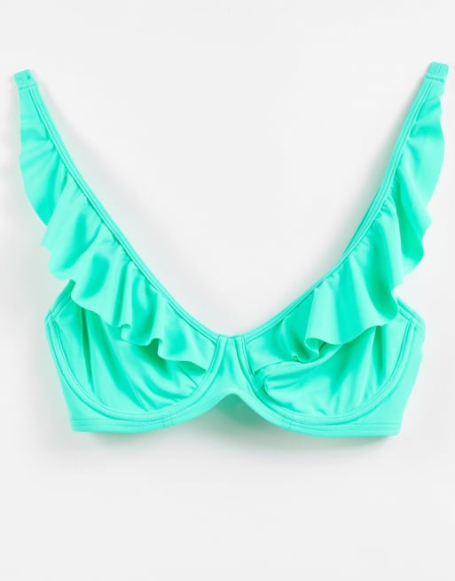 Figleaves – Rene – Aquablå bikiniöverdel med bygel och volang