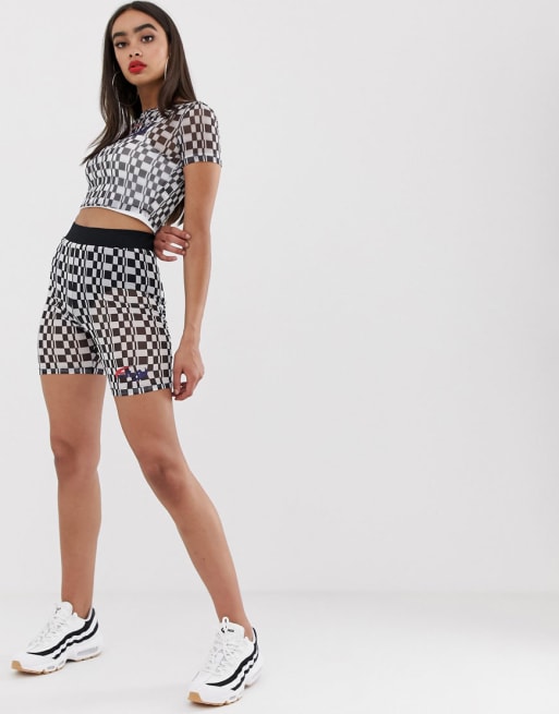 Fila – Schackrutigt set med crop top och shorts