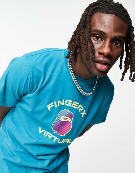 Fingercroxx – Blå t-shirt med tryck