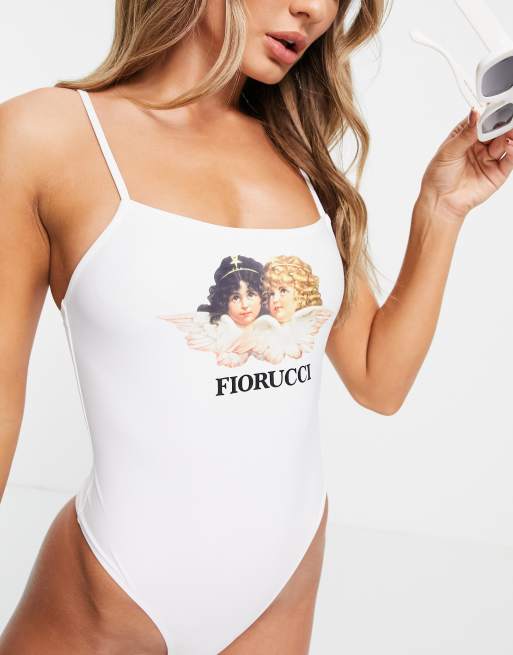 Fiorucci – Baddräkt med smala axelband och ängeltryck