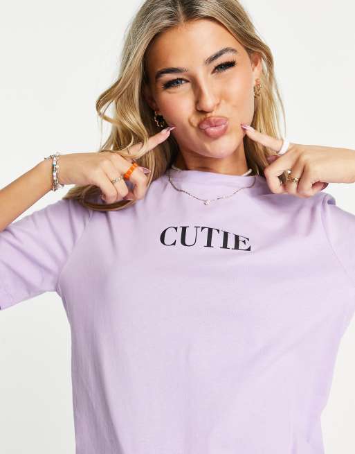 Fire & Glory – Amalia – Ljuslila t-shirt med Cutie-tryck