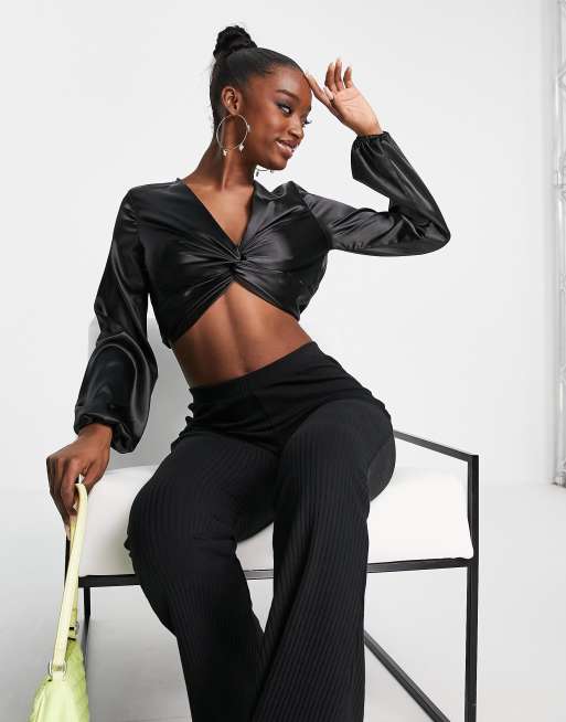 First Distraction The Label – Svart topp i satin med snurrad detalj