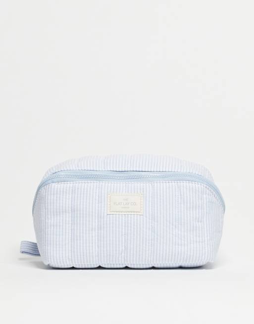 The Flat Lay Co. – Marshmallow – Flat Lay – Blårandig, boxig sminkväska i bomull