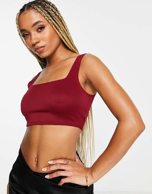 Flounce London – Vinröd crop top i följsamt material med fyrkantig ringning