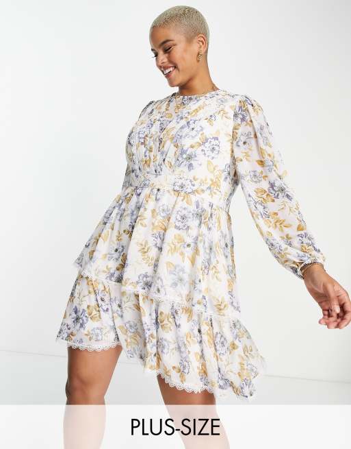 Forever New Curve – Blåblommig miniklänning med spetskanter och kluven design