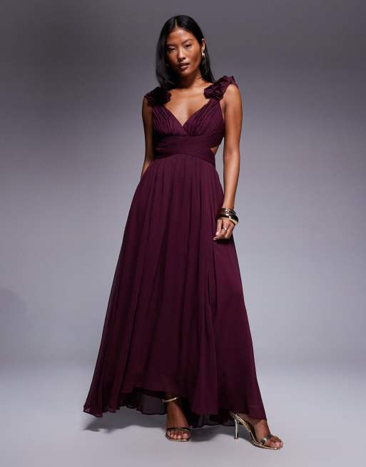 Forever New Petite – Portvinsröd midaxiklänning med volanger på axlarna