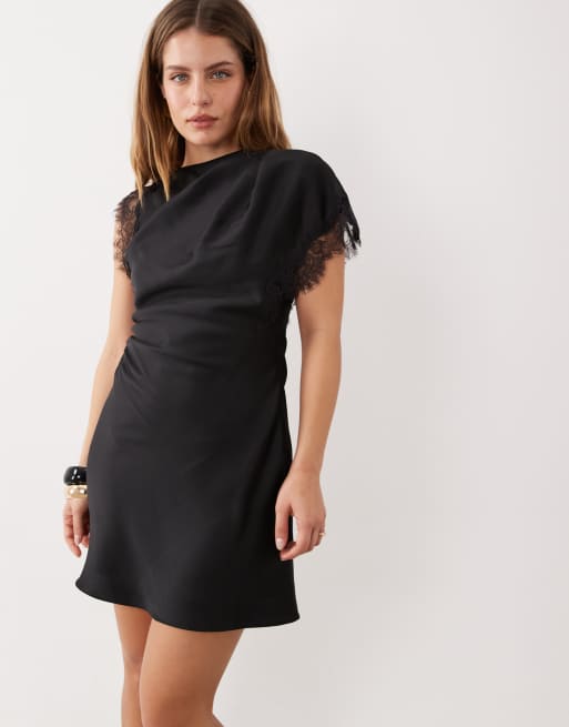 Forever New Petite – Svart miniklänning i satin och spets
