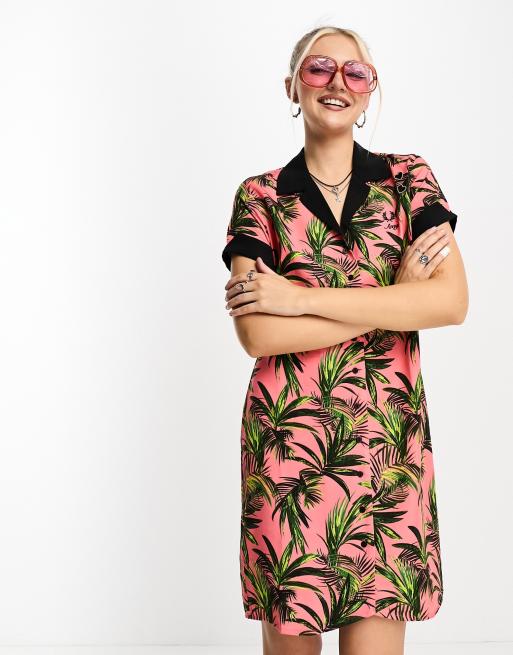 Fred Perry – Korallrosa, palmmönstrad skjortklänning