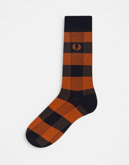 Fred Perry – Ljusbruna, ton-i-ton-färgade, rutiga strumpor