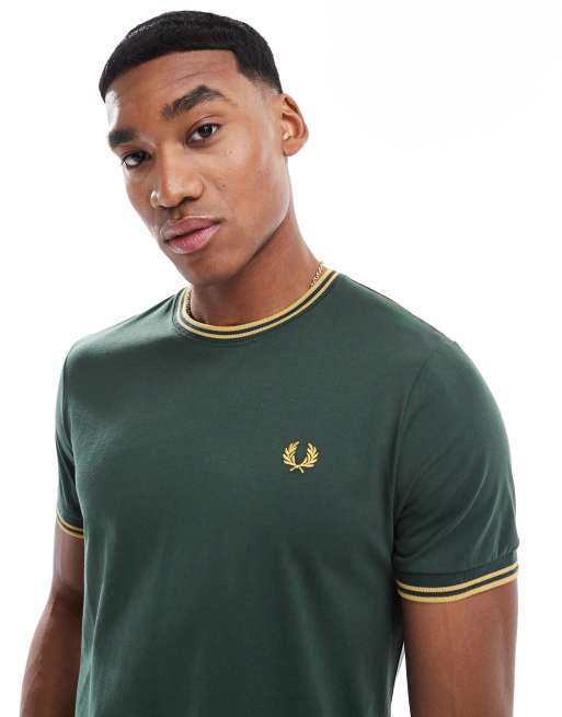 Fred Perry – Mörkgrön t-shirt med dubbla kantränder