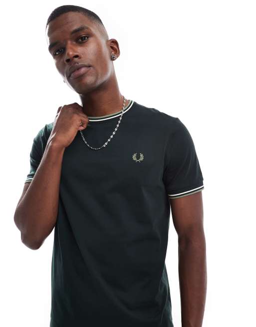 Fred Perry – Mörkgrön t-shirt med dubbla kantränder