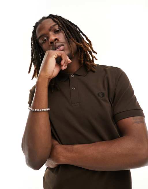 Fred Perry – Mörkt tobaksbrun pikétröja med logga