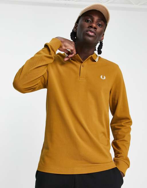 Fred Perry – Senapsgul pikétröja med kantrand och långa ärmar