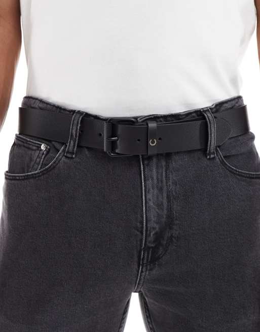 Fred Perry – Svart bälte i scotchgrain-läder