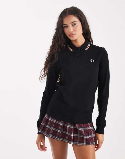 Fred Perry – Svart pikétröja med långa ärmar och kantränder