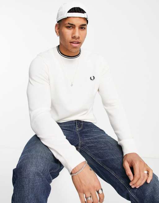 Fred Perry – Vit klassisk tröja med rund halsringning