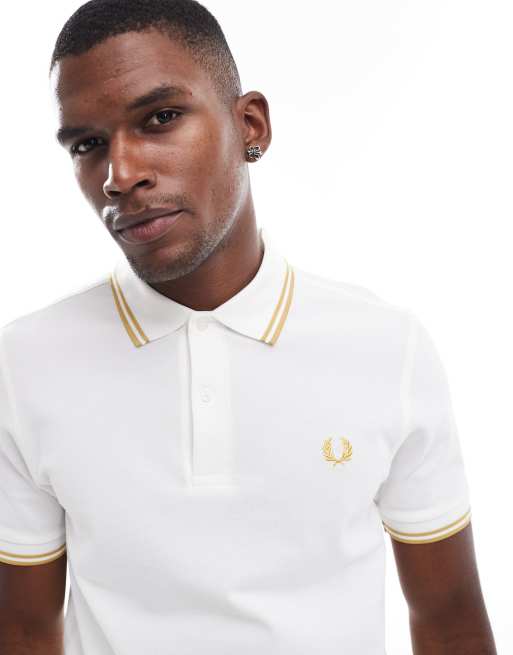 Fred Perry – Vit pikétröja med kontrasterande ränder