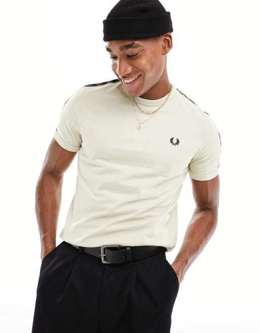 Fred Perry – Vit t-shirt med kontrastfärgade tejpade detaljer