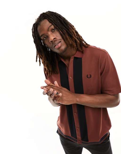 Fred Perry – Whiskeybrun pikétröja med ränder och logga