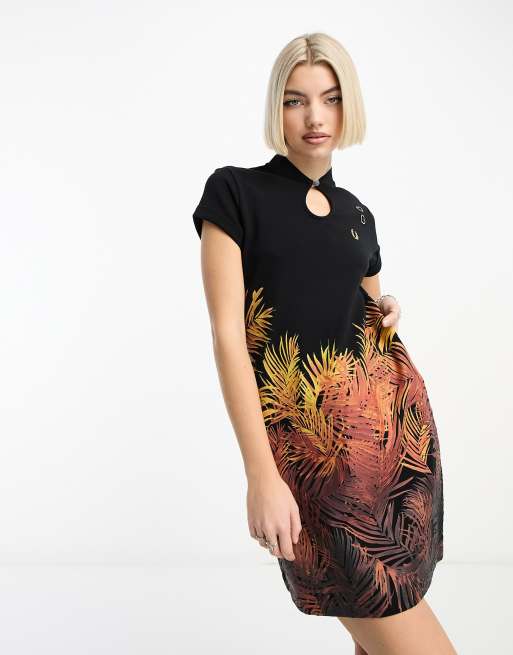 Fred Perry x Amy Winehouse – Svart, palmmönstrad klänning