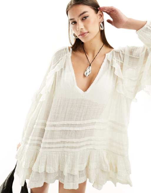 Free People – Elfenbensvit panelsydd klänning med smock