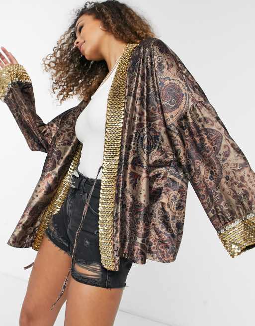 Free People – Layla – Svartmönstrad, utsmyckad kimono