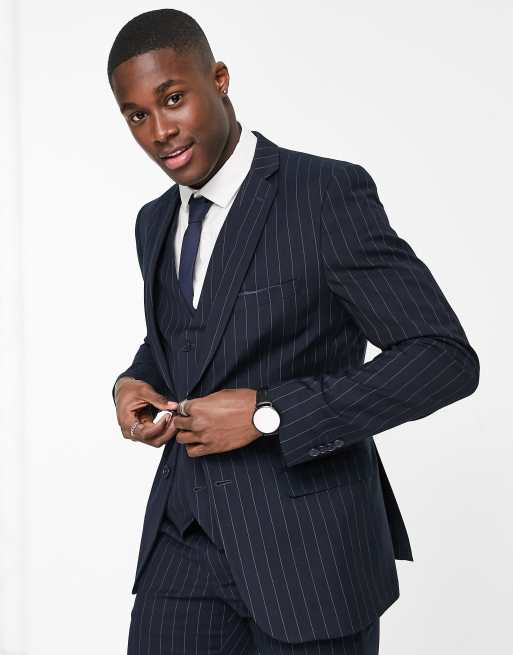 French Connection – Kritstrecksrandig kavaj med smal passform, del av kostym