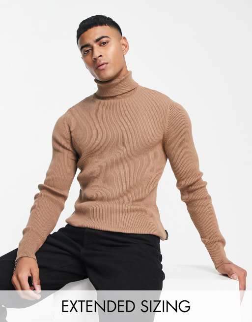 French Connection – Ljusbrun, ribbad tröja med polokrage