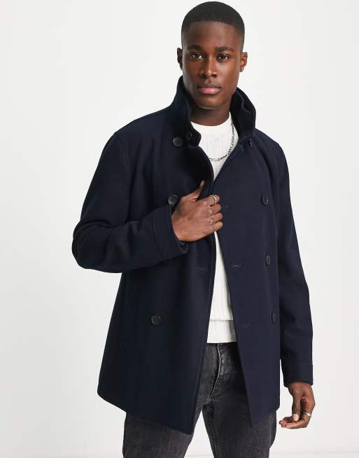 French Connection – Marinblå, dubbelknäppt kappa med ståkrage