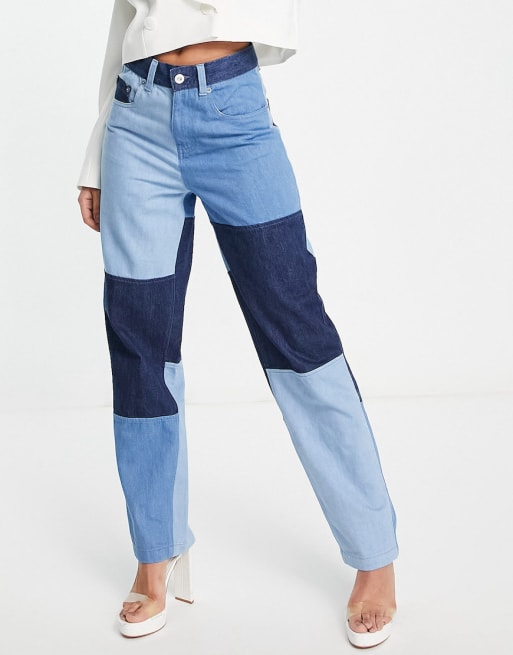 French Connection – Mellanblått, panelsytt set i denim med kort jeansjacka och jeans