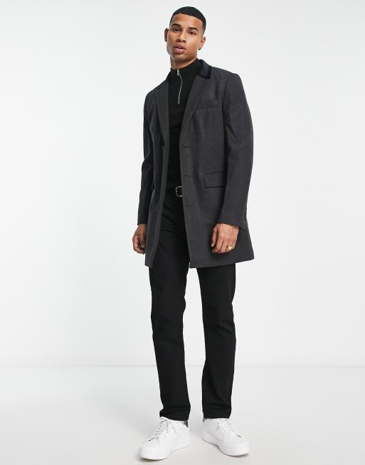 French Connection – Mörkgrå, enkelknäppt ytterrock med sammetskrage