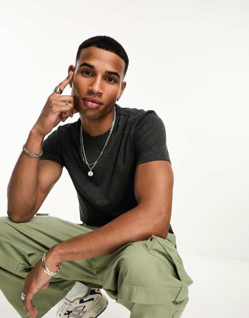 French Connection – Mörkgrå, melerad t-shirt med rund halsringning