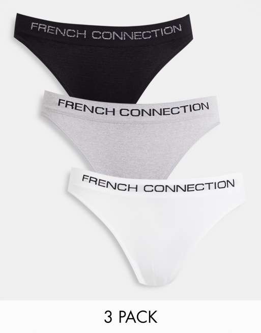 French Connection – Svarta, vita och grå trosor i seamless-design, 3-pack