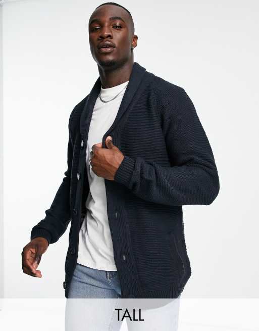French Connection Tall – Marinblå yllemixad kofta i kraftigt material