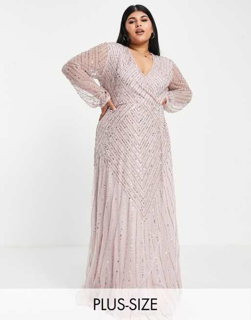 Frock and Frill Plus – Brudtärna – Brungrå maxiklänning med omlottdesign