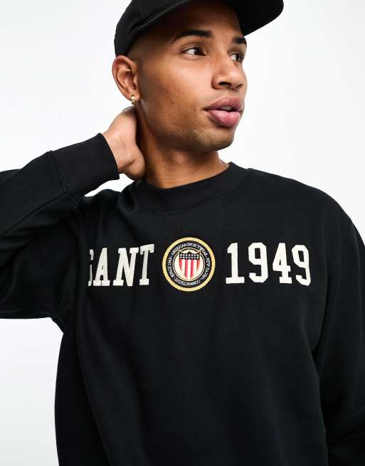 GANT – 1949 – Svart sweatshirt med avslappnad passform och broderad sköldlogga