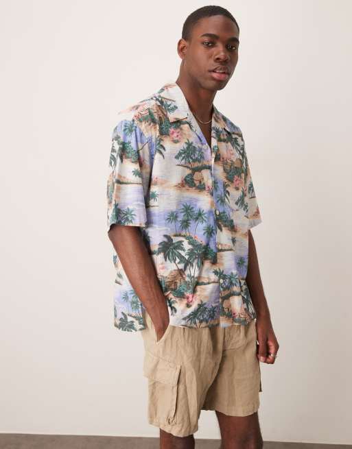 GANT – Blå, semesterömönstrad skjorta med korta ärmar