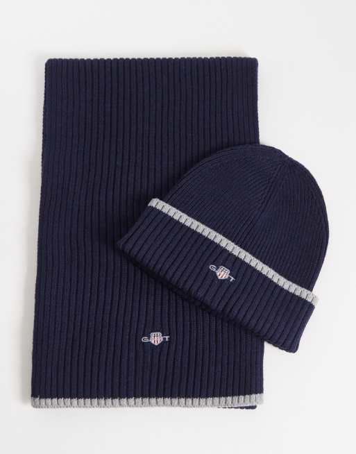 GANT – Essential – Marinblått gåvoset med mössa och halsduk med sköldlogga