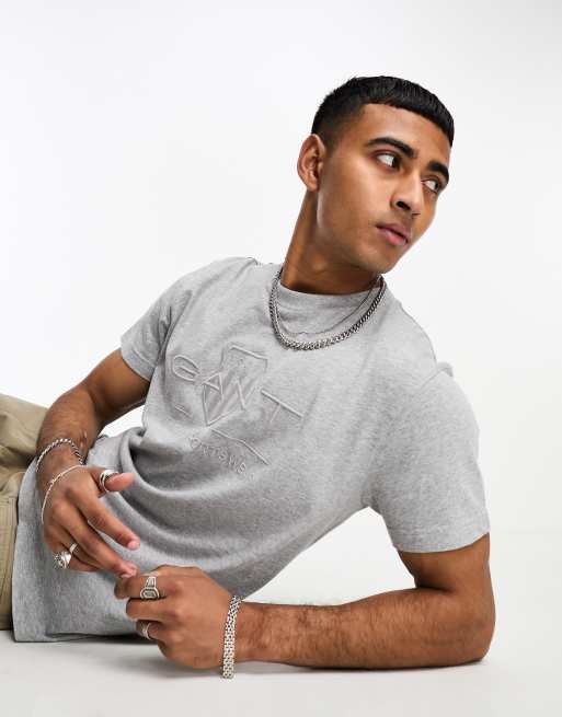 GANT – Gråmelerad t-shirt med broderad sköldlogga ton-i-ton