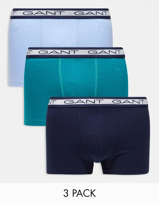 Gant – Marinblå, gröna och blå kalsonger med logga på midjebandet, 3-pack