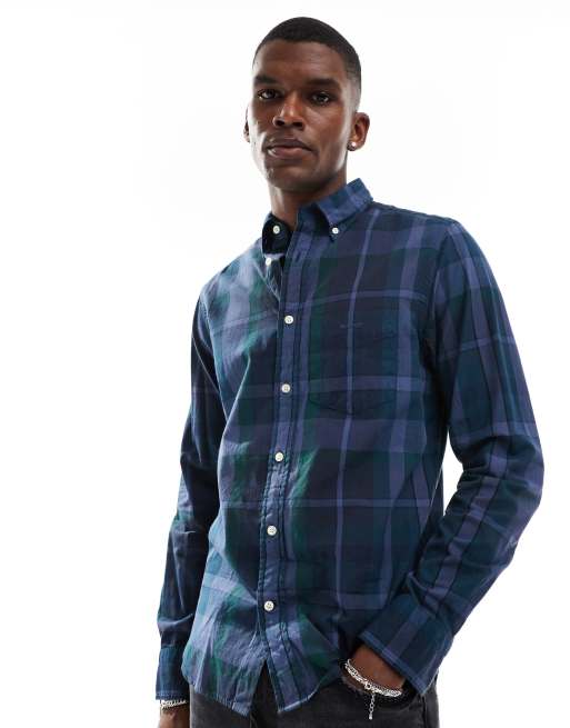 GANT – Marinblå, långärmad skjorta med rutigt mönster