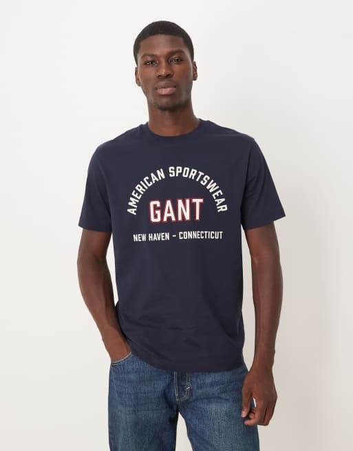 GANT – Marinblå t-shirt med logga i collegestil