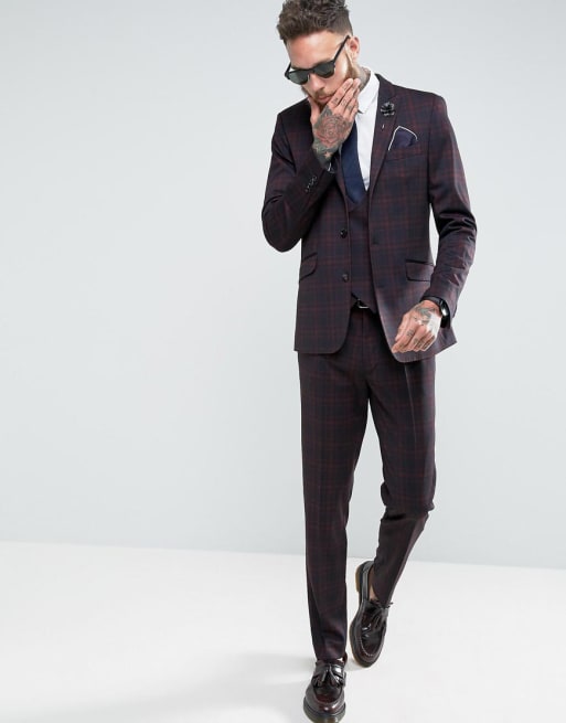 Gianni Feraud Blårödrutig kostym i skinny fit