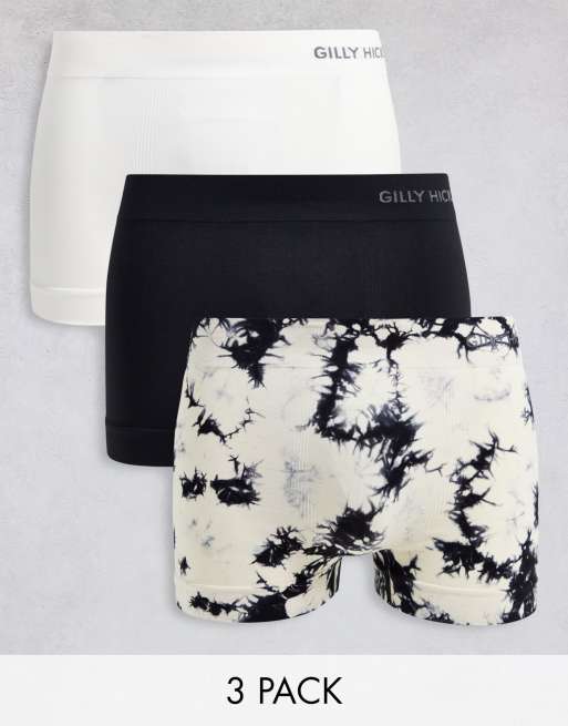 Gilly Hicks – Vita/svart enfärgade och svarta stentvättade kalsonger med logga på midjebandet i seamless design, 3-pack