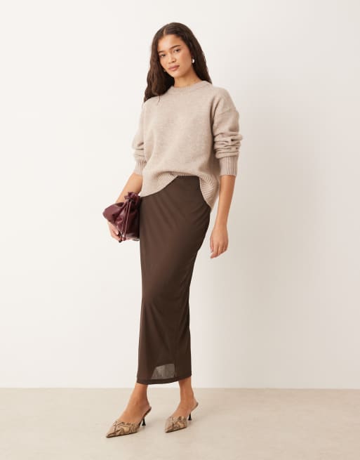 Gina Tricot – Brun, skir midikjol