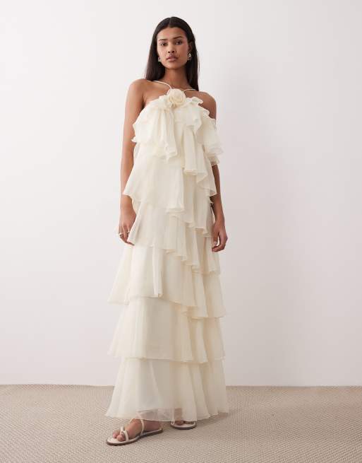Gina Tricot – Gräddvit maxiklänning med volang
