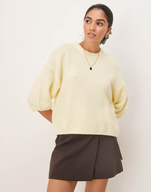 Gina Tricot – Ljusgul, stickad topp med rund halsringning och korta puffärmar