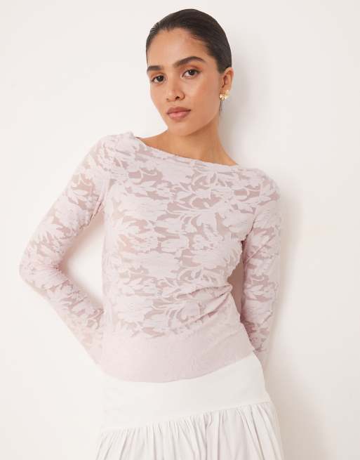 Gina Tricot – Ljusrosa topp med rund halsringning, långa ärmar och texturerat mönster