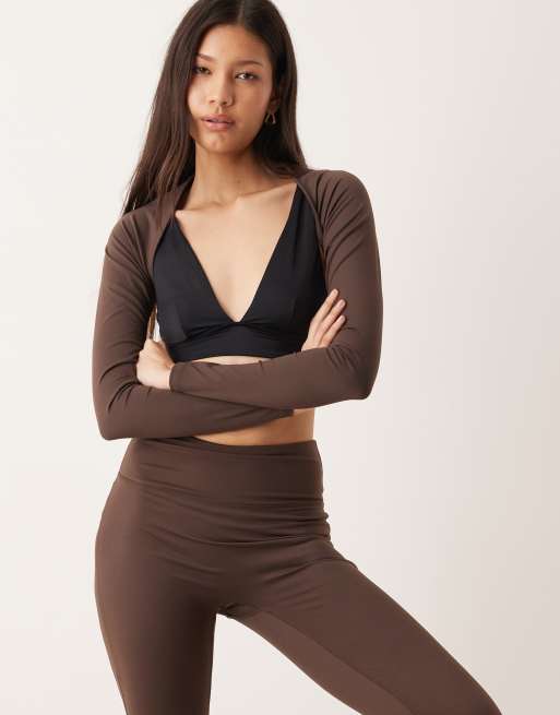 Gina Tricot – Mixa och matcha – Mörkbrunt yogaset i utsvängd design